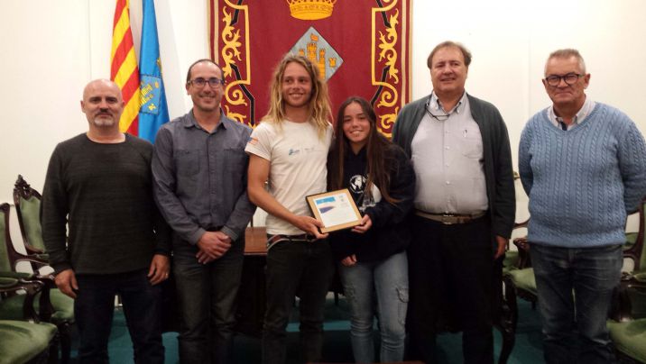 Els joves campions van ser rebuts ahir a la Sala Noble de l'Ajuntament de Palamós, on l'alcalde els va fer lliurament, en nom del municipi, d'una placa en reconeixement a la seva proclamació com a campions del món de la classe Nacra-15, i en agraïment a la projecció i el foment que fan arreu, del nom del Club de Vela Palamós i del municipi.